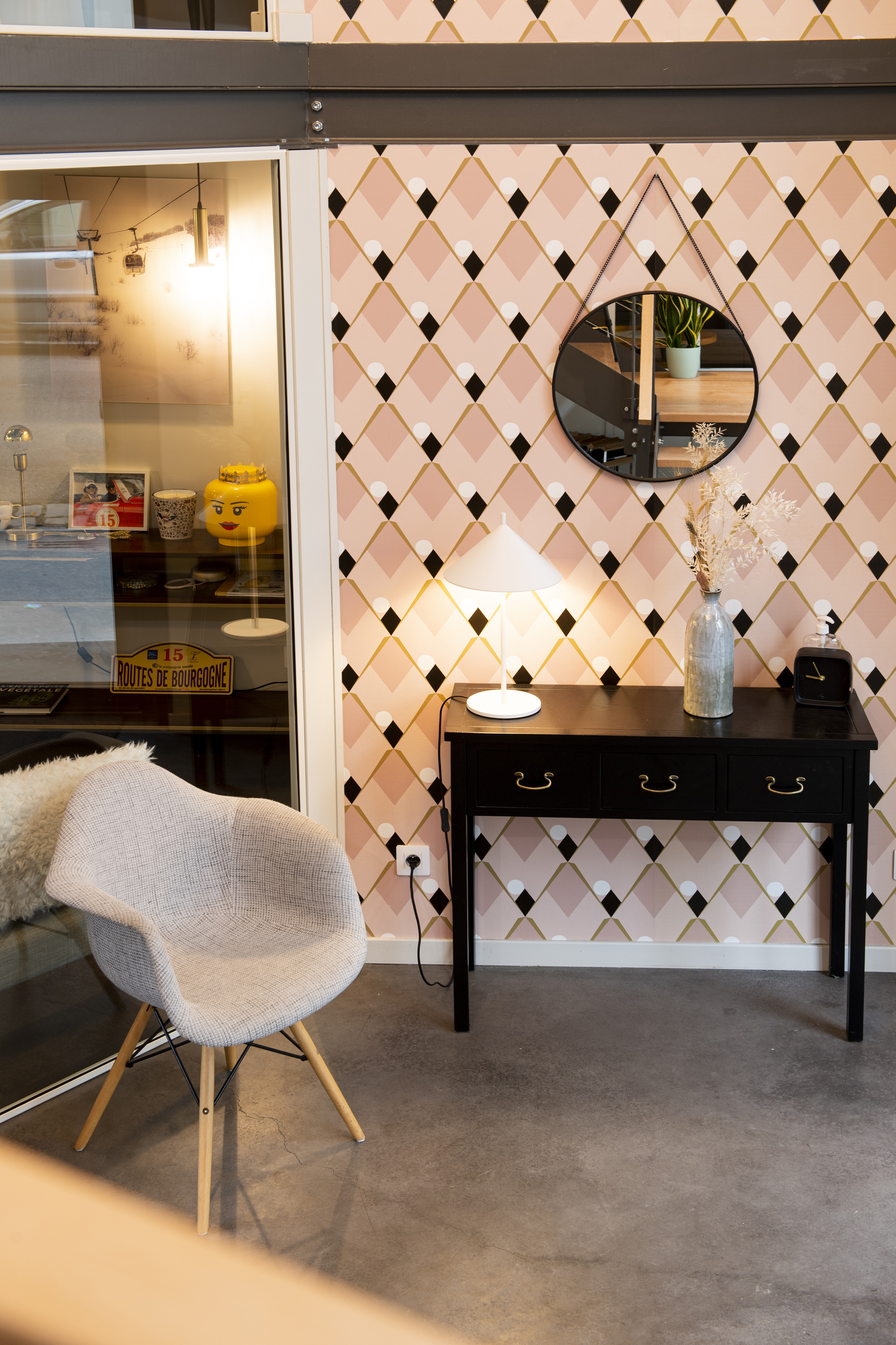 Sur l’ensemble des 170 m2, répartis sur deux niveaux, on découvre des pièces ayant chacune leur personnalité, leur univers et qui mixent avec goût mobilier chiné ­– meubles, miroirs anciens, chaises d’école, appliques et luminaires ou encore bibelots – et mobilier ergonomique et acoustique pour assurer un confort de travail au quotidien. A l’image de nos intérieurs, l’ambiance créée est le reflet de son occupant : Esprit « boudoir » pour Agathe, et « vintage arty » pour Emilie.
