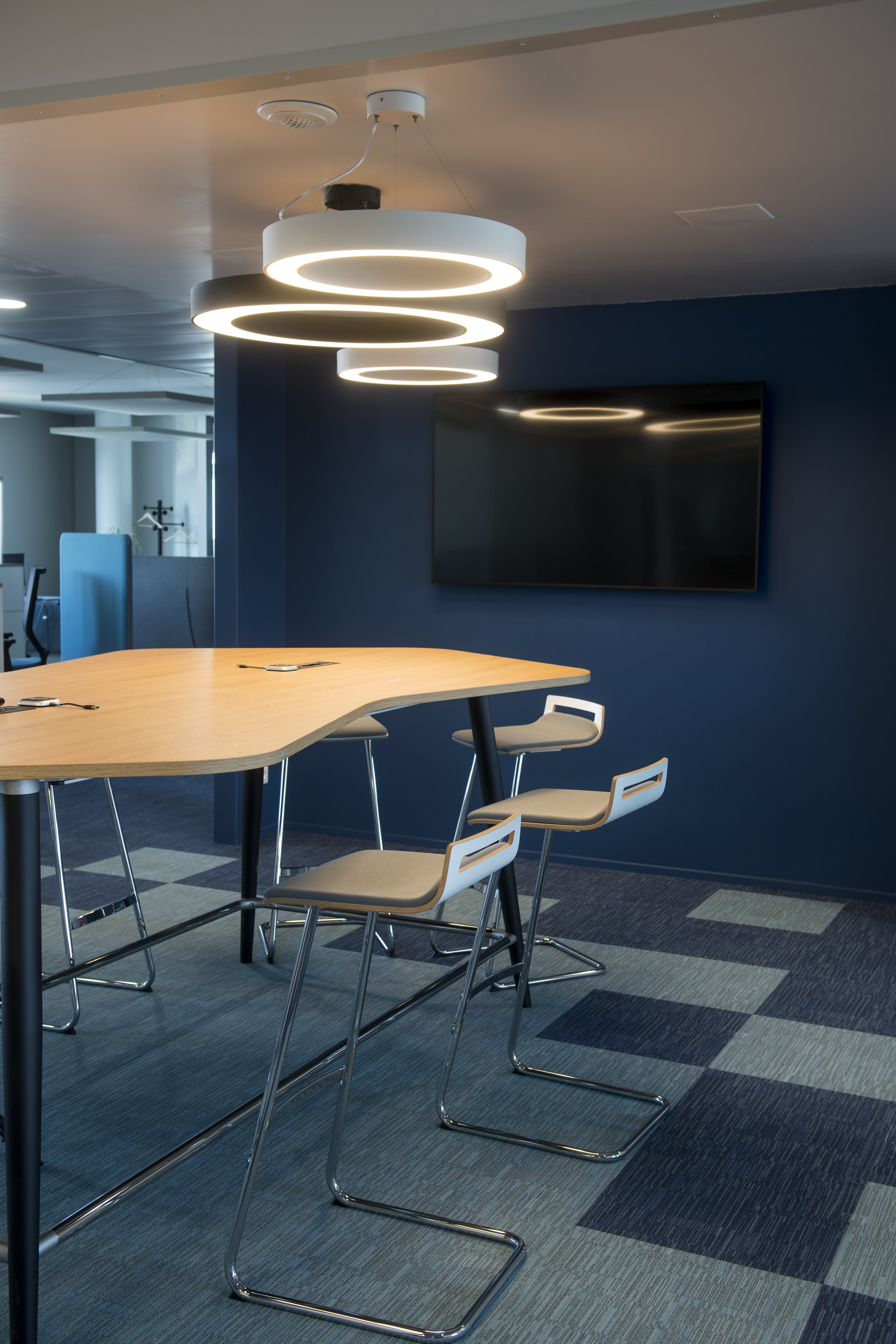 L’aménagement proposé, spécifique à chaque service, mixe des postes types pour le travail individuel et des postes non attribués de 2, 4, 6 personnes pour collaborer, à proximité immédiate et en partie insonorisée, complétés par des salles de réunions pour travailler en équipe plus large.
