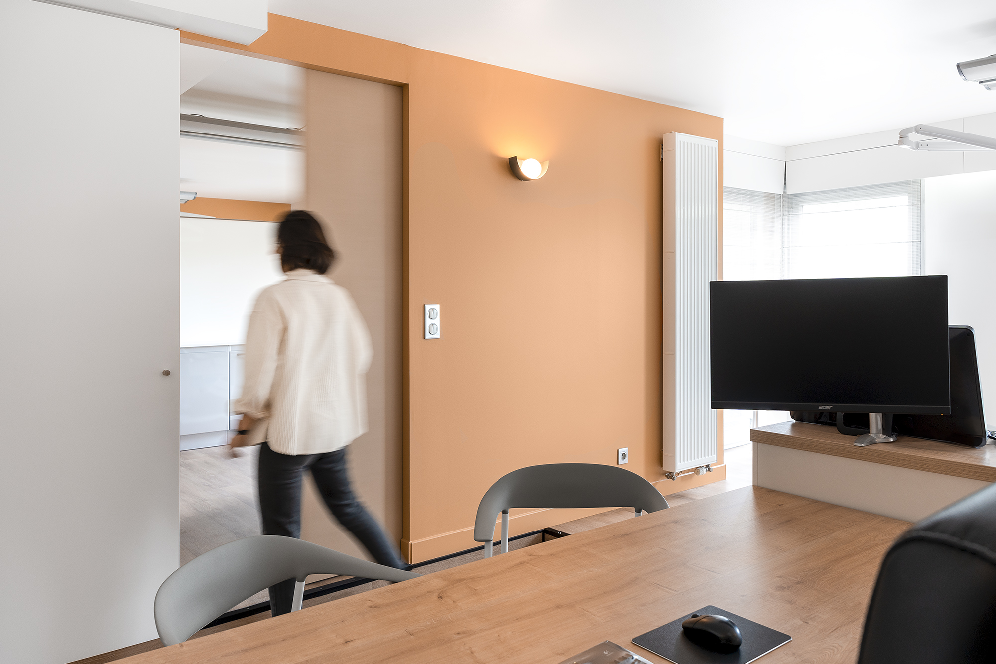 Les locaux possédaient déjà certains agencements menuisés de très bonne qualité qu’il aurait été dommage de démolir. Dans un souci à la fois écologique et budgétaire, Apsi a proposé de revaloriser ces agencements de sorte à couvrir les couleurs passées de mode et à rendre l’espace plus lumineux grâce à des couleurs neutres et claires, dans une ambiance naturelle et chaleureuse, renforcée par l’apport de matières telles que le bois.