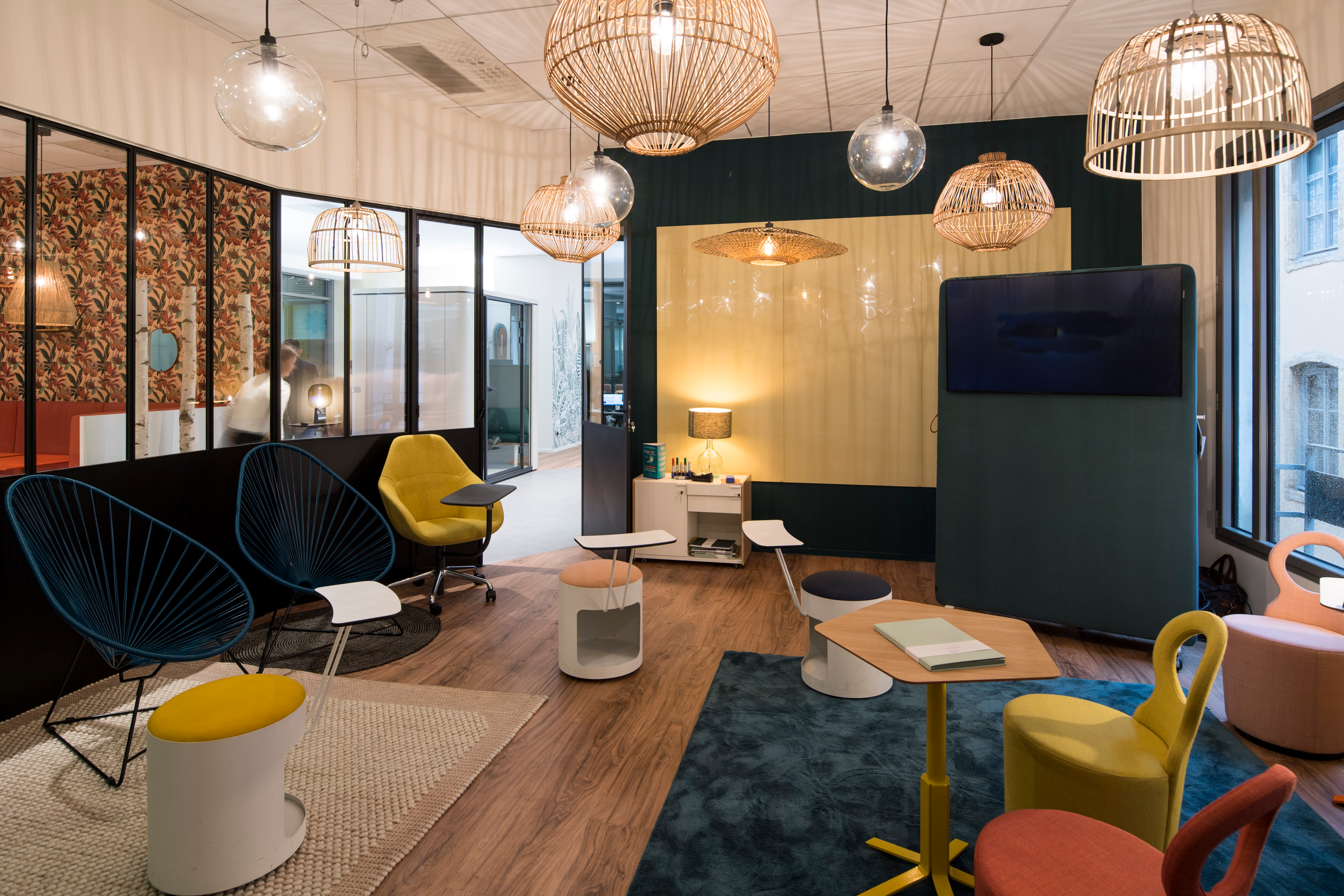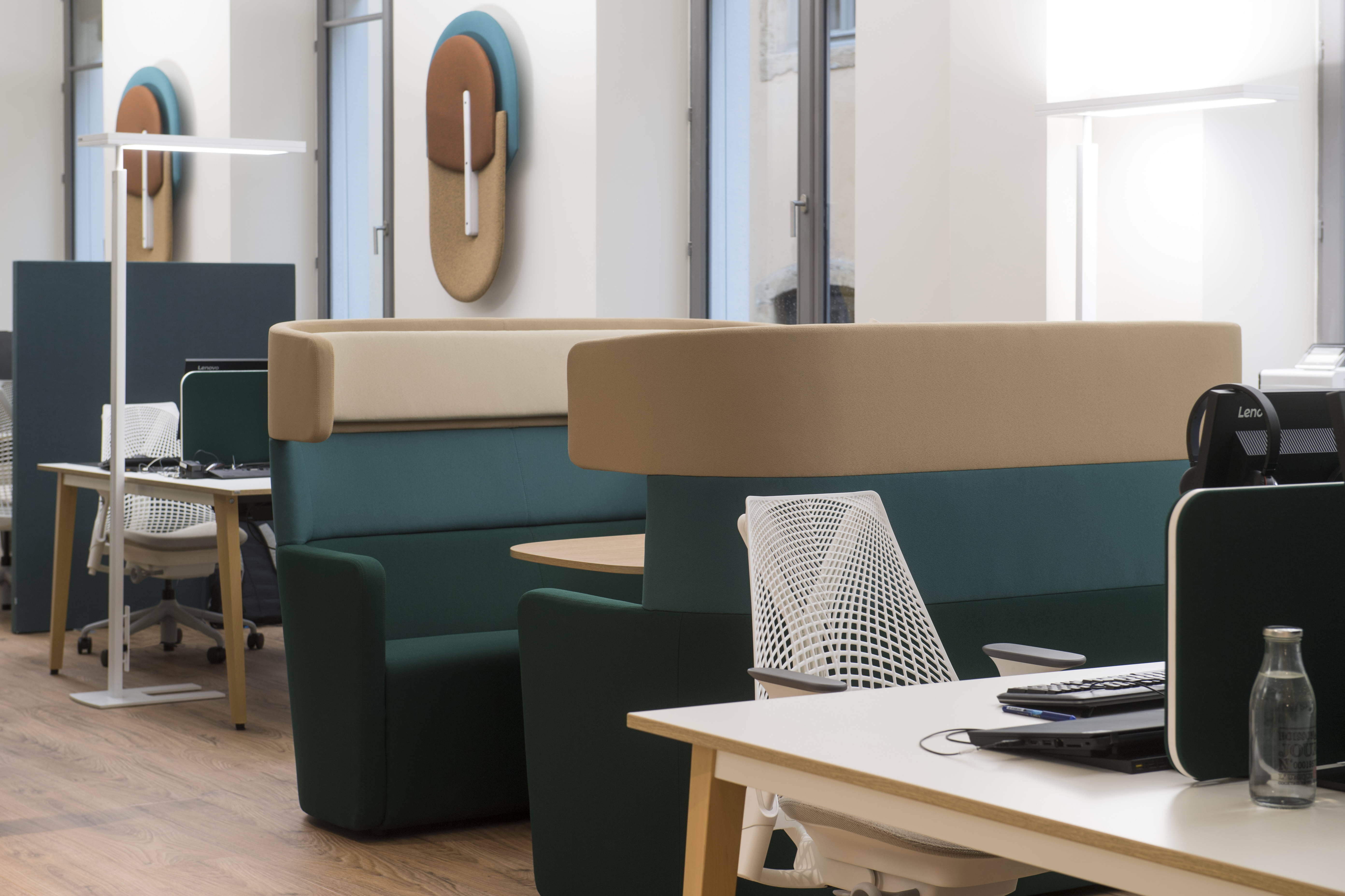 Aujourd’hui, l’équipe de La Factory explore au quotidien les 180 m2 articulés autour d’une salle de réunion créative dépaysante aux accents méditerranéens, un Work Café aux tons chaleureux et fleuris, prolongé par un grand espace ouvert structuré par différents postes de travail et mobiliers non attribués qui permettent à chacun de s’installer suivant l’usage souhaité : se concentrer, téléphoner, échanger, partager…