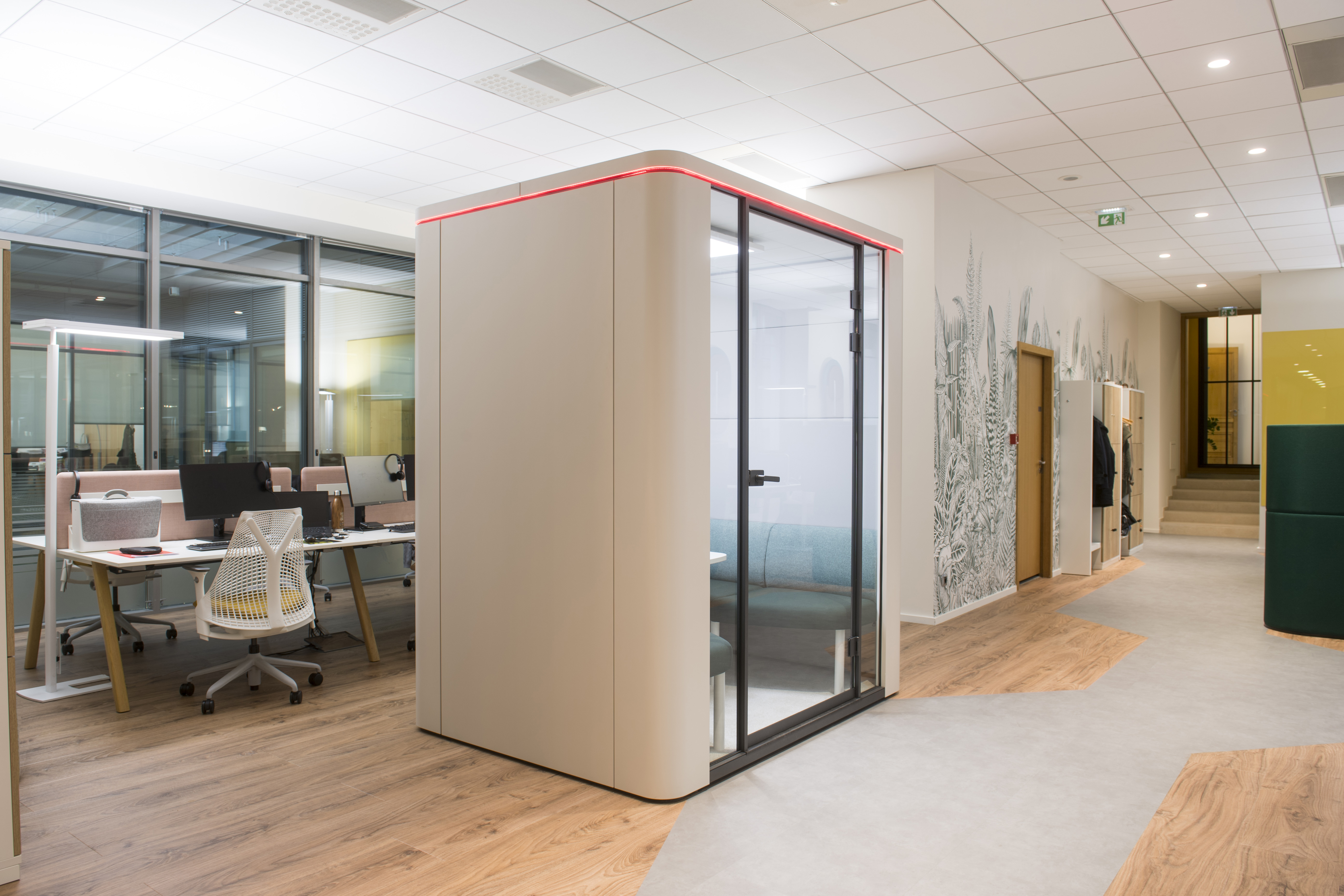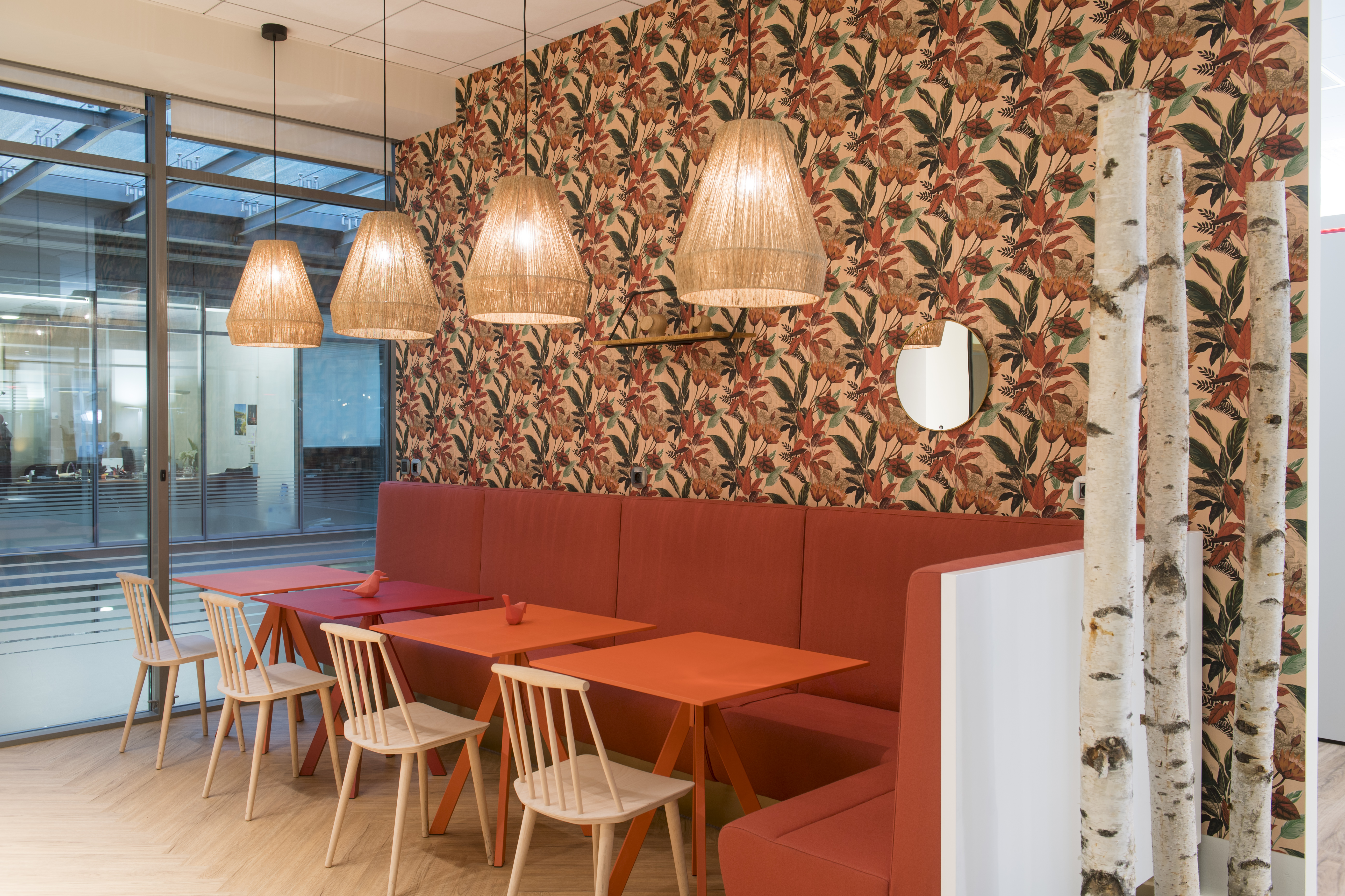 Au cœur de la presqu’île lyonnaise, dans un immeuble de type haussmannien, Apsi a repensé totalement l’espace dédié à La Factory en commençant par le décloisonner pour faciliter l’échange entre les 15 membres de l’équipe tout en s’attachant à la gestion acoustique et au confort de travail. Le concept esthétique retenu vise à faire entrer la nature en ville grâce à des fresques, papiers peints floraux et végétaux, en capitalisant sur les couleurs identitaires du CIC, bleu, vert et rouge, pour créer un environnement de travail stimulant et apaisant. Un espace co-construit avec l’équipe pour que chacun adhère à cette nouvelle manière de travailler.