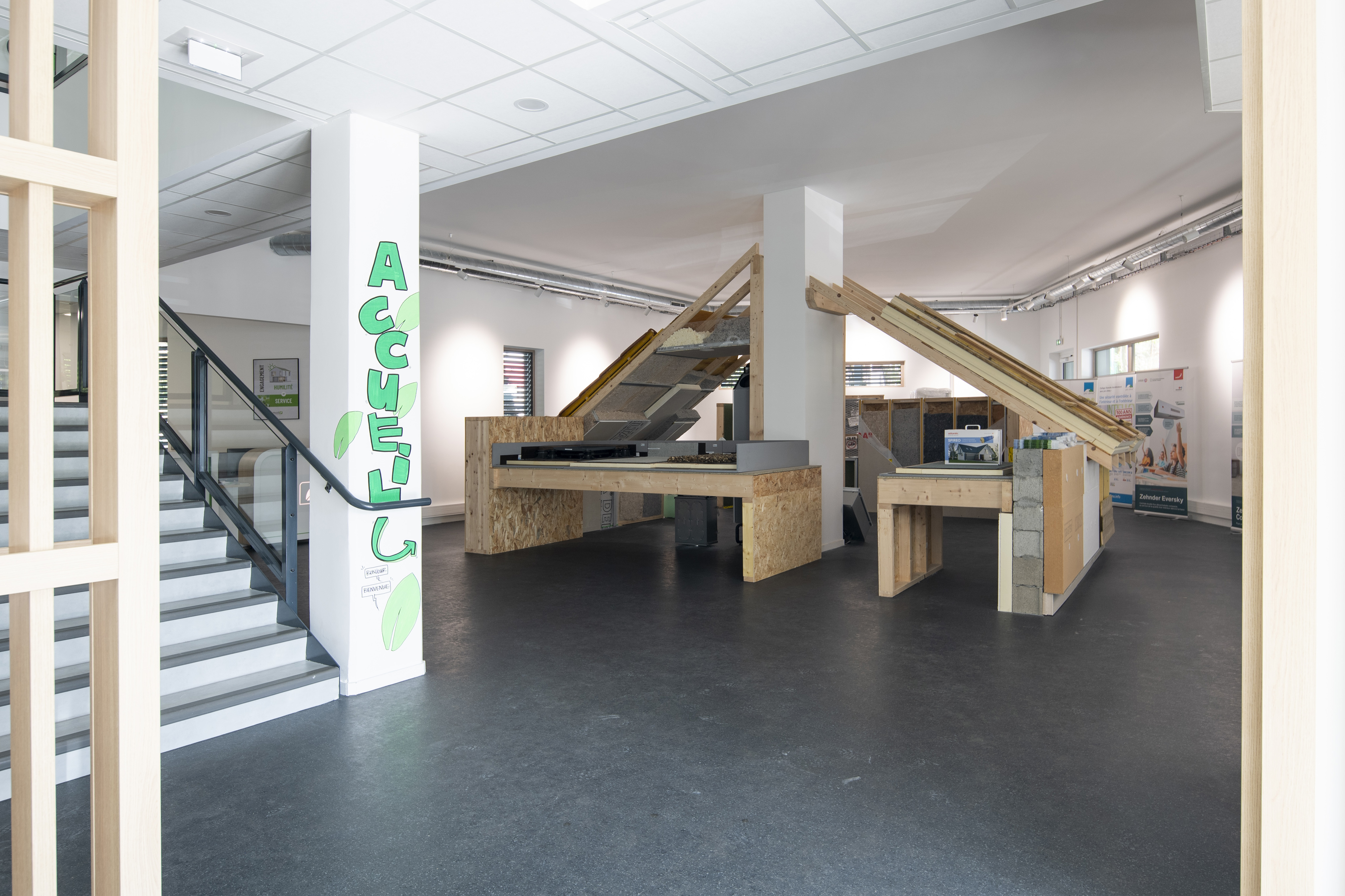 Le visiteur est au cœur de l’échange et non un spectateur passif. Pour appuyer cette démarche, une zone de démonstration grandeur nature située au rez-de-chaussée, le FEMATLab, invite le visiteur à découvrir les solutions de l’entreprise : ITE, étanchéité, ventilation, génie climatique. Les différents produits y sont présentés toute l’année ce qui en fait également un outil idéal pour les formations, aussi bien internes qu’externes.