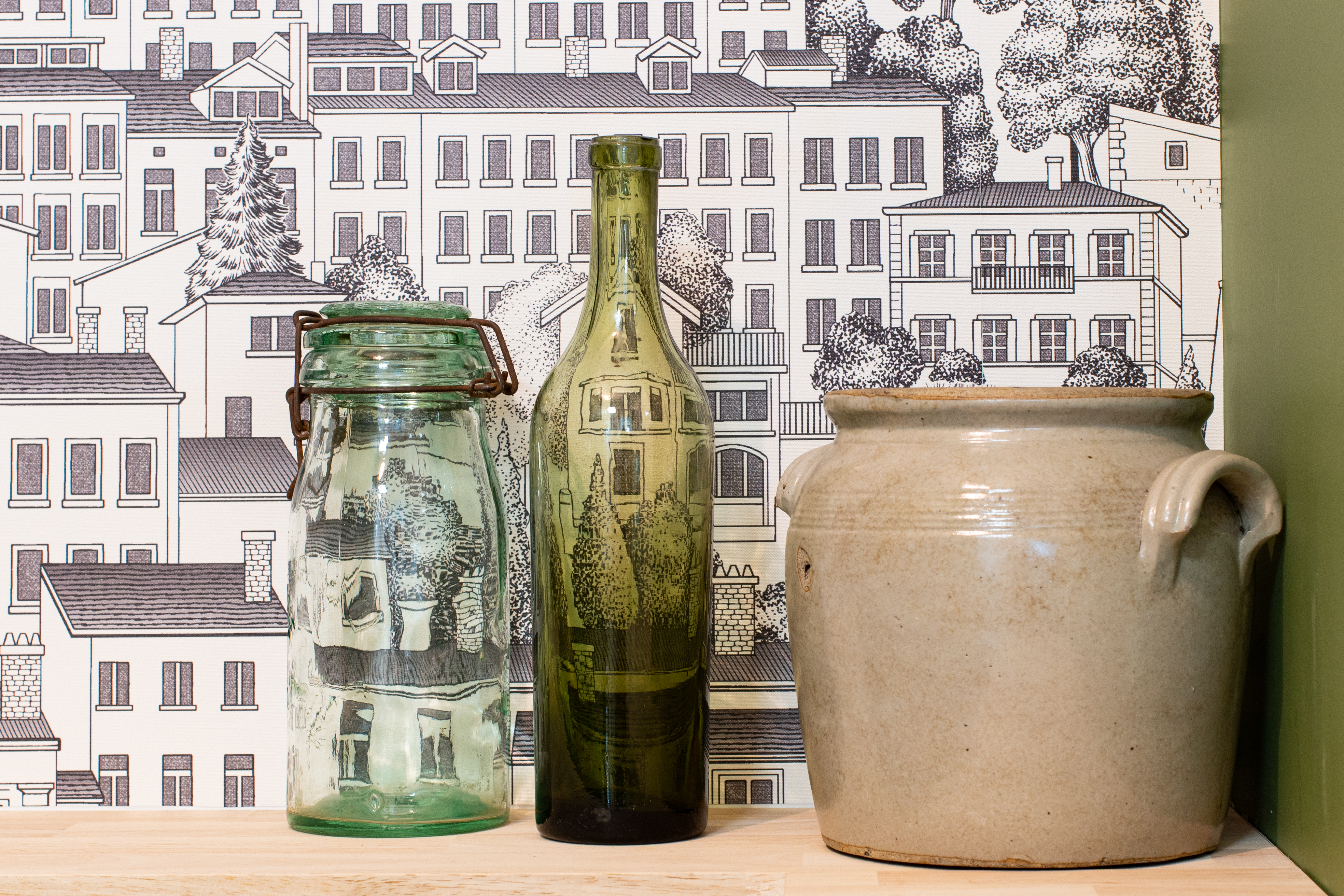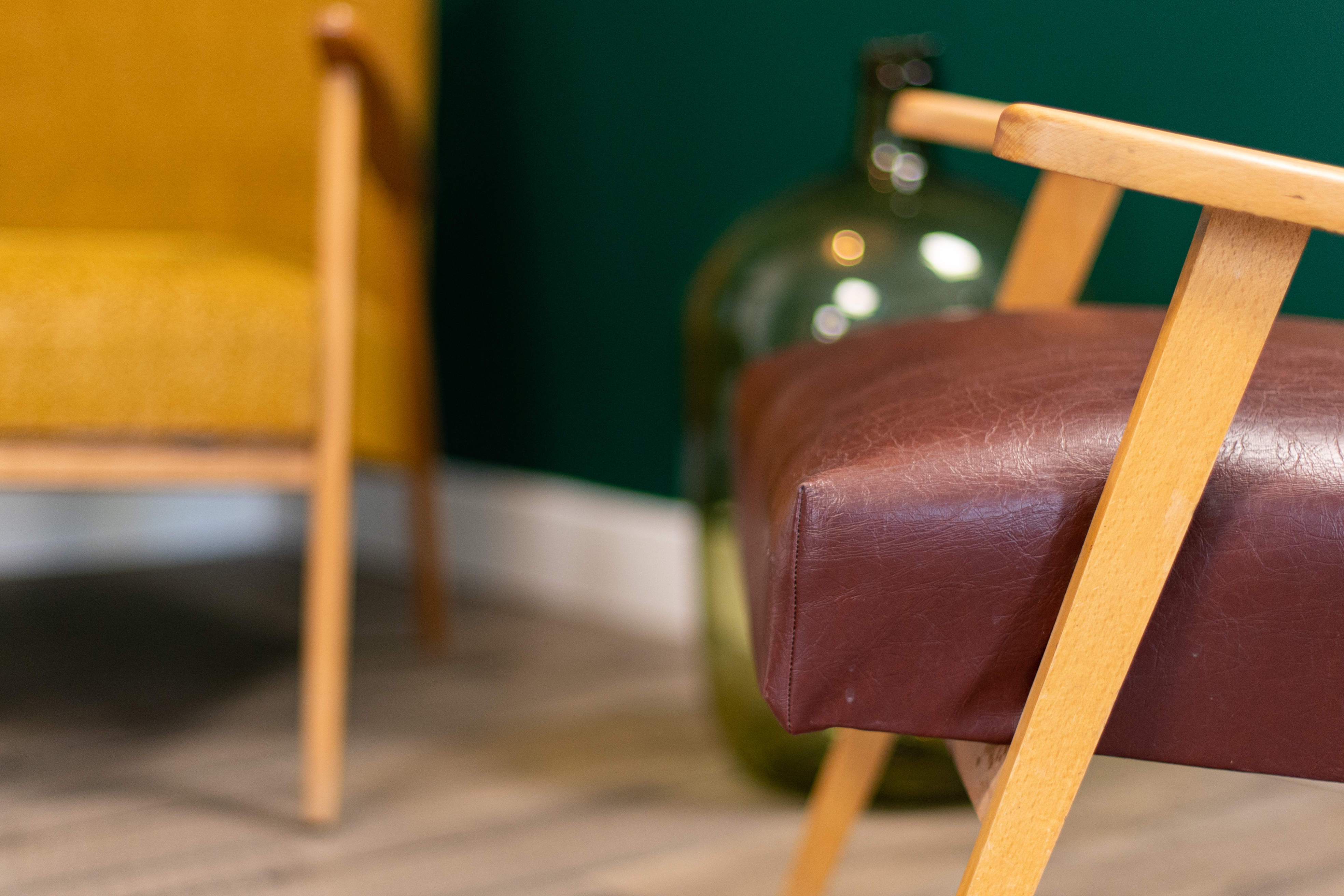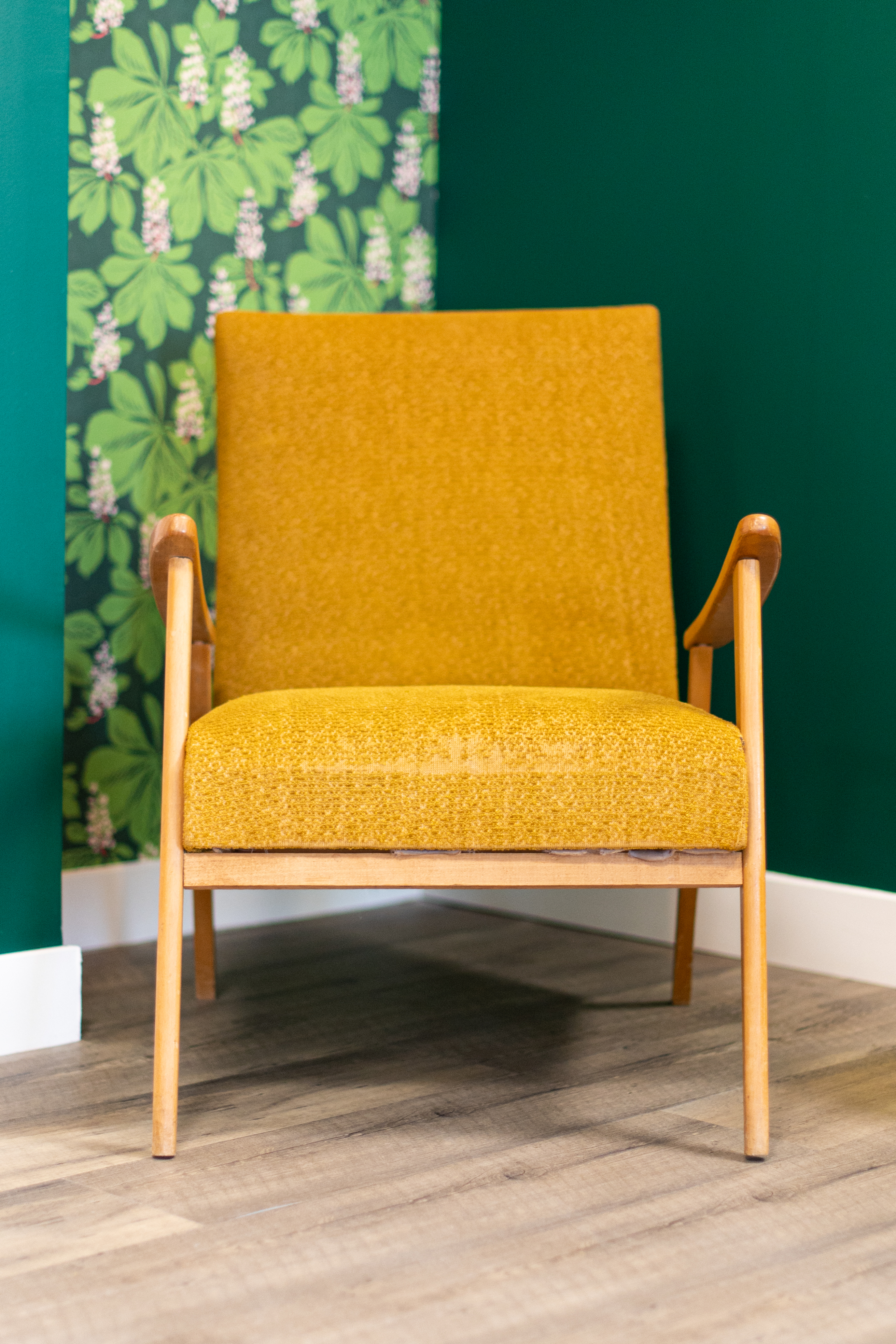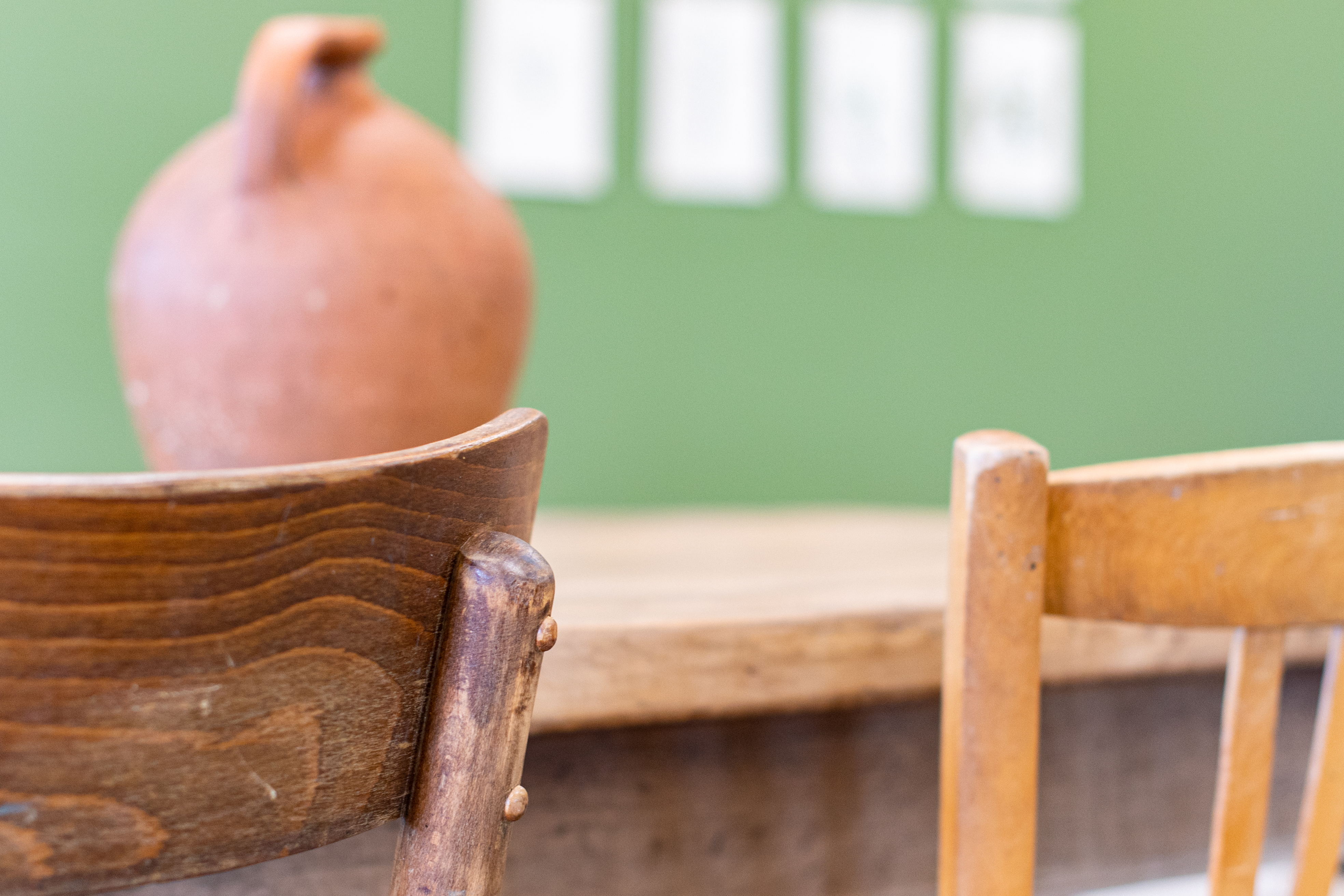Dès l’entrée, deux fauteuils vintages accueillent le visiteur avant de rejoindre une salle de réunion dépaysante, parée de diverses breloques chinées.