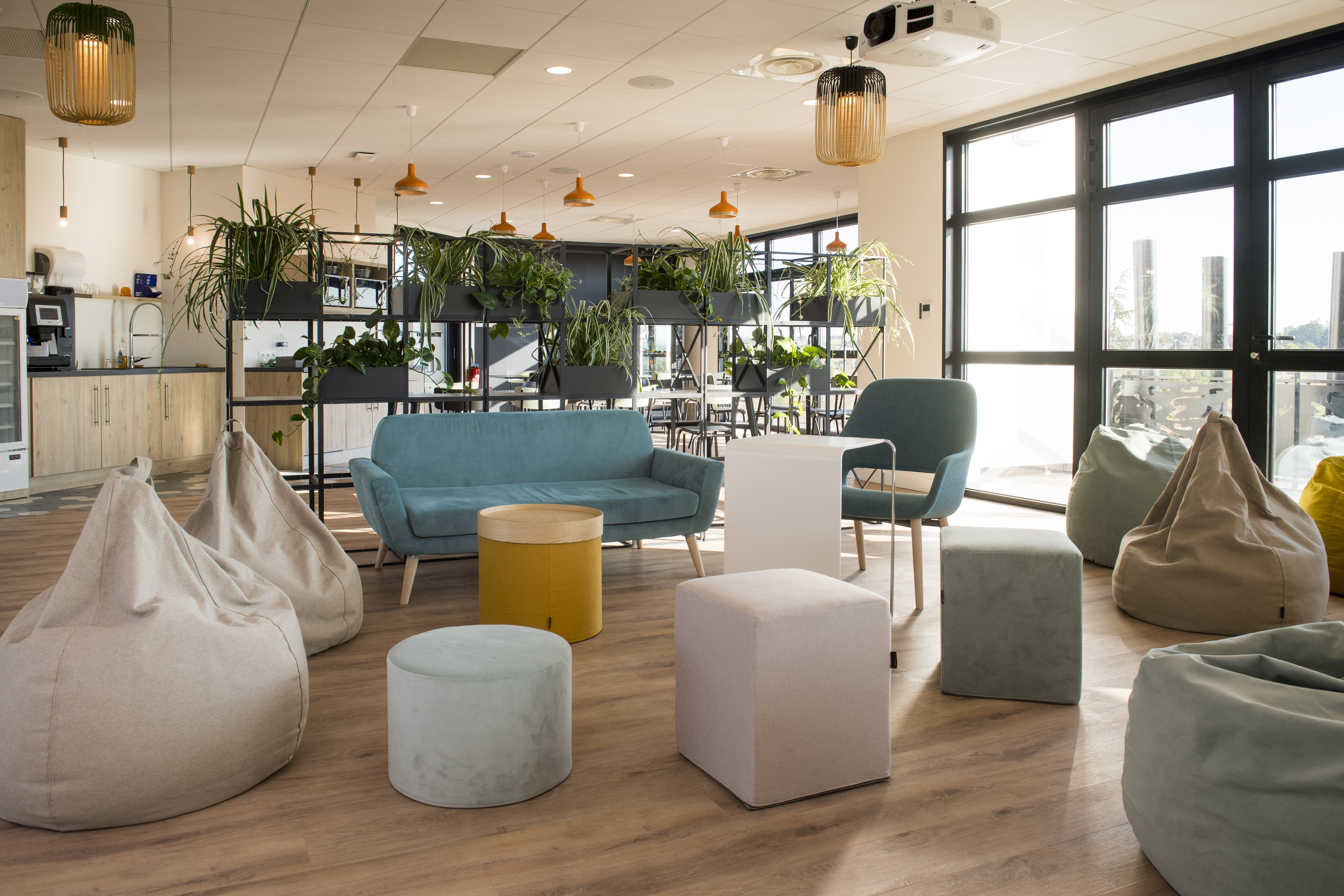 Pour l’aménagement des espaces de travail, l’accent est ainsi mis sur les espaces collectifs avec des zones informelles facilement accessibles et connectées. Des points de déports pour se concentrer ou téléphoner sont également installés.